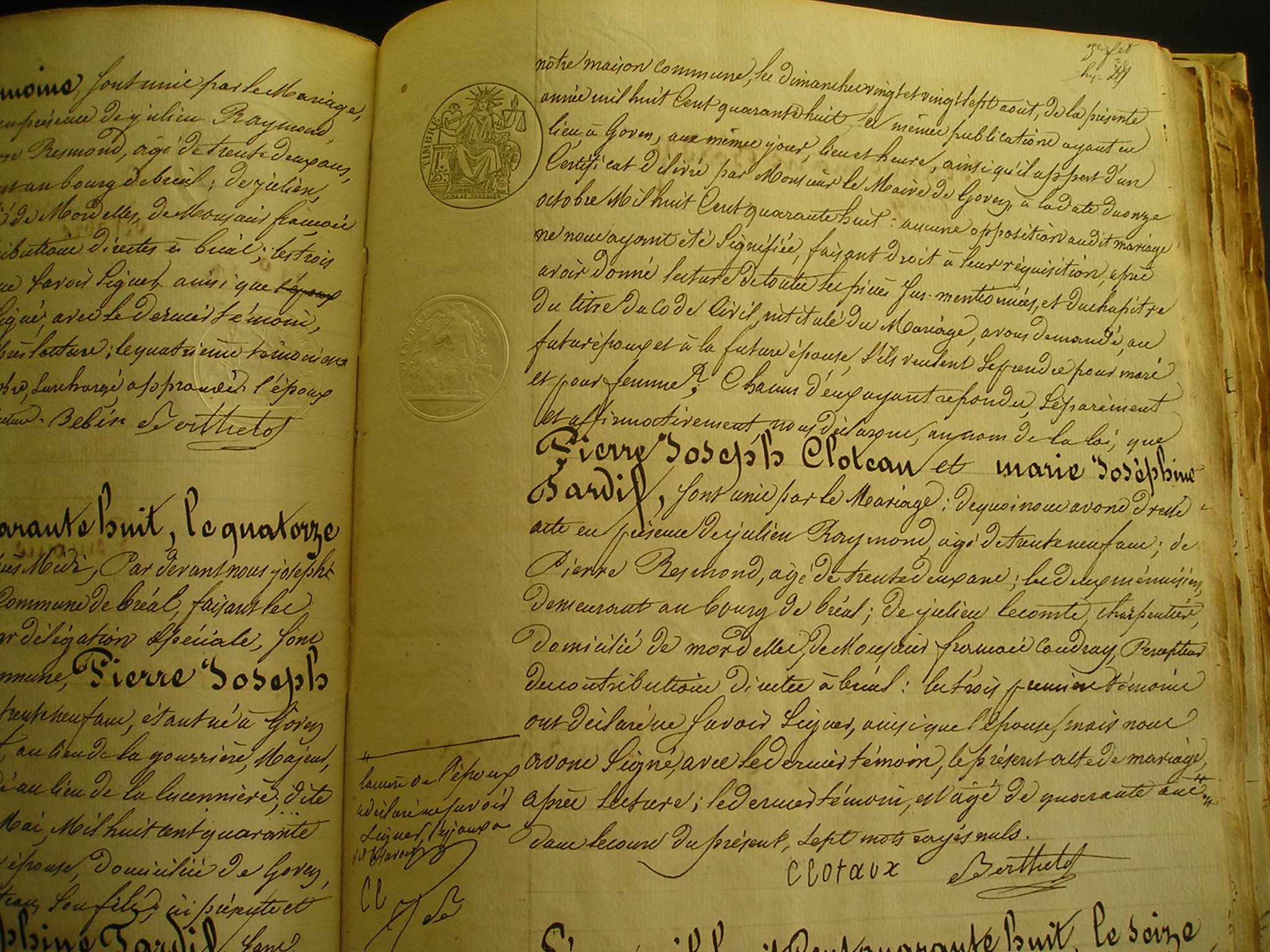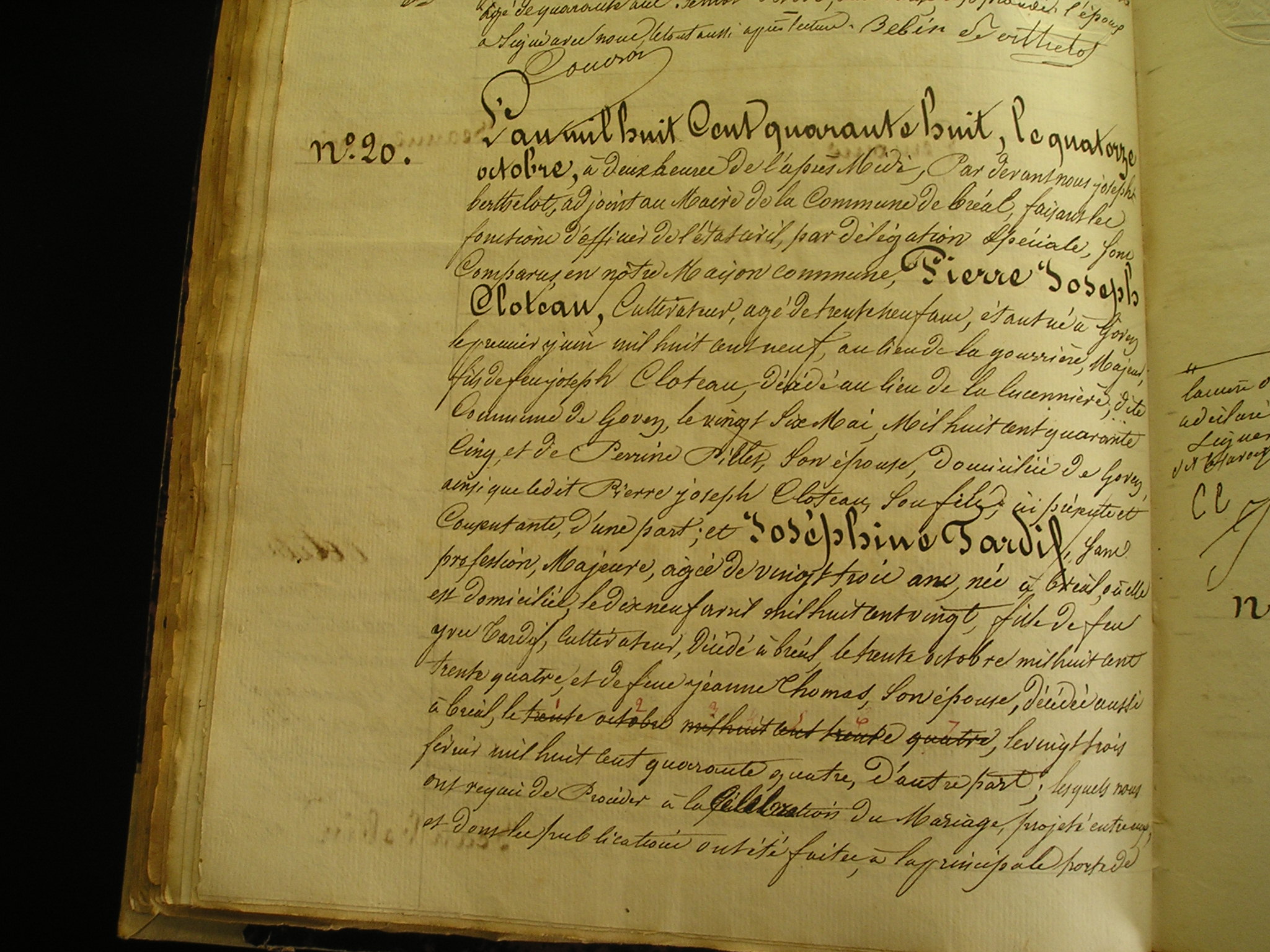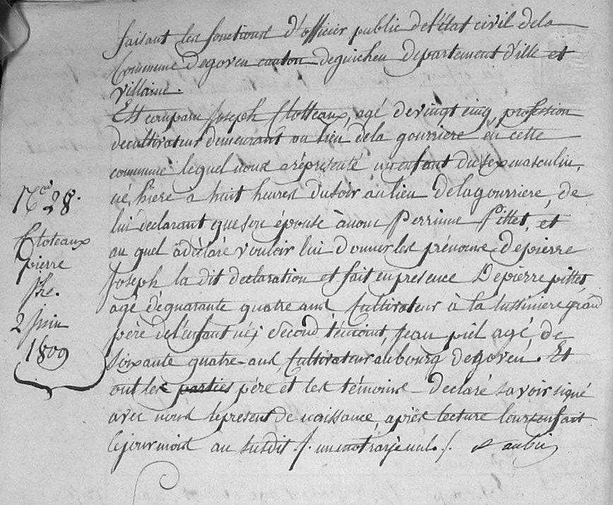 CLOTEAUX Pierre Joseph ° le 02/06/1809 au village de la Gourrière fils de Joseph