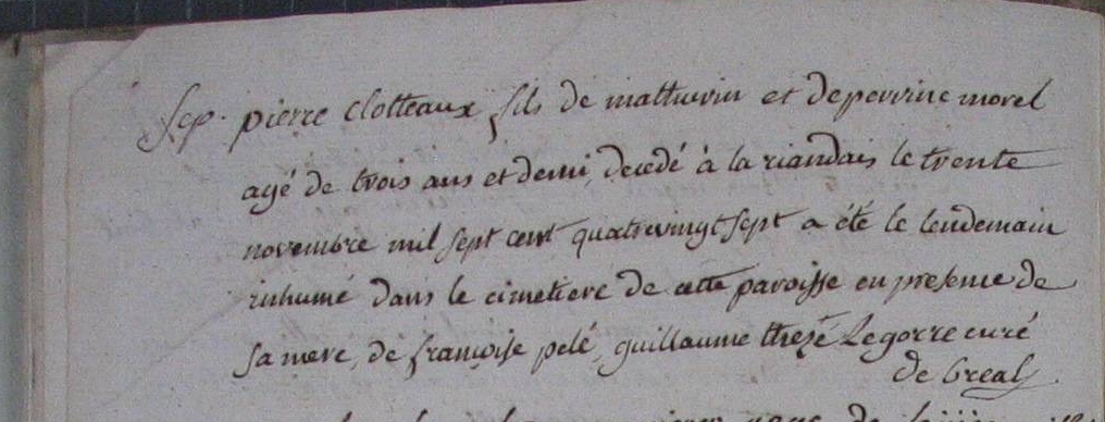 Naissance : 26 mai 1784 à Bréal-Sous-Montfort 35310 Décès : 30 novembre 1787 à Bréal-Sous-Montfort 35310 Riandais
