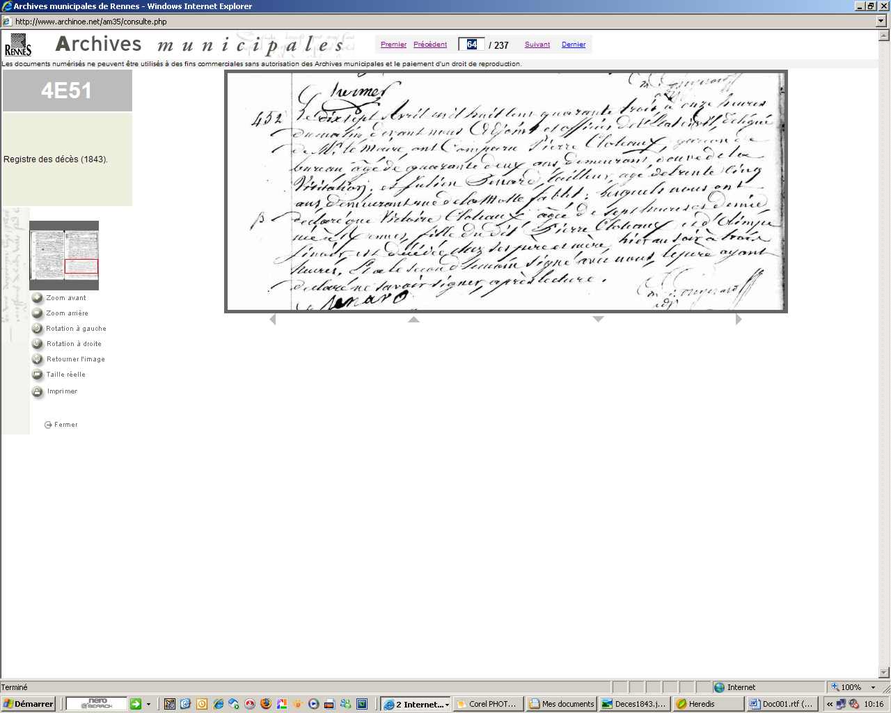 Transcription de Rennes acte du 12/01/1959
