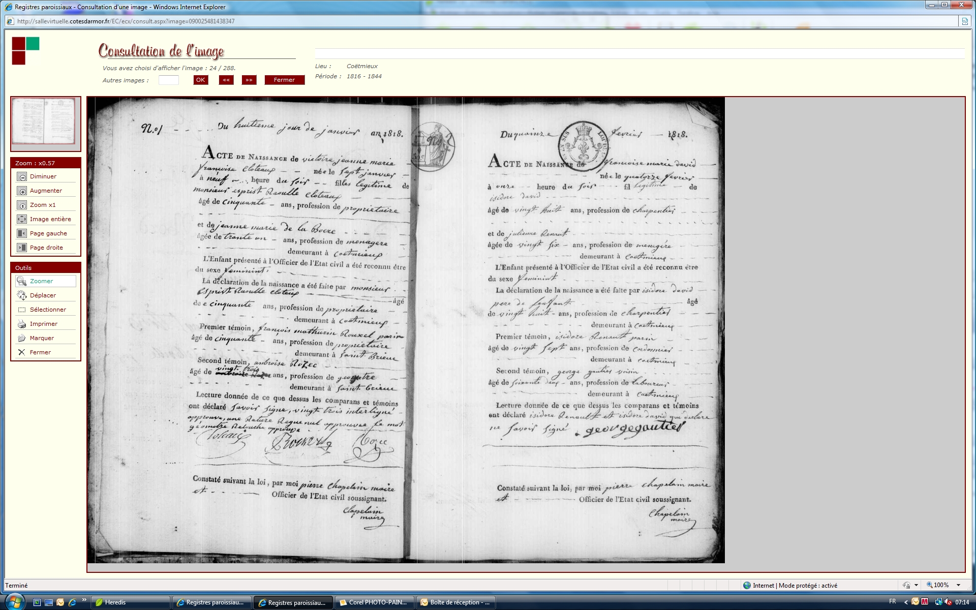 Naissance : 7 janvier 1818 à Coëtmieux 22400