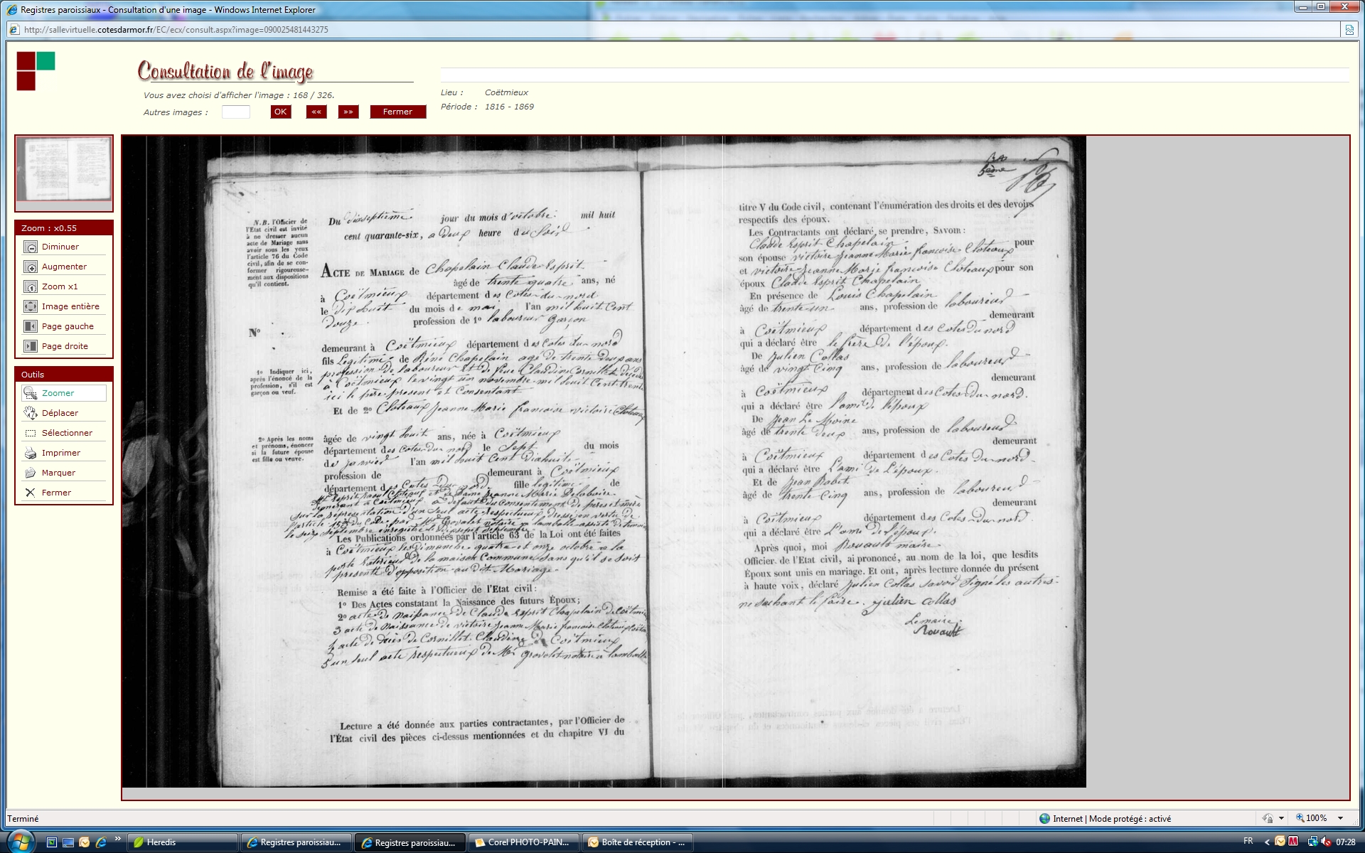 Mariage : 17 octobre 1846 à Coëtmieux 22400