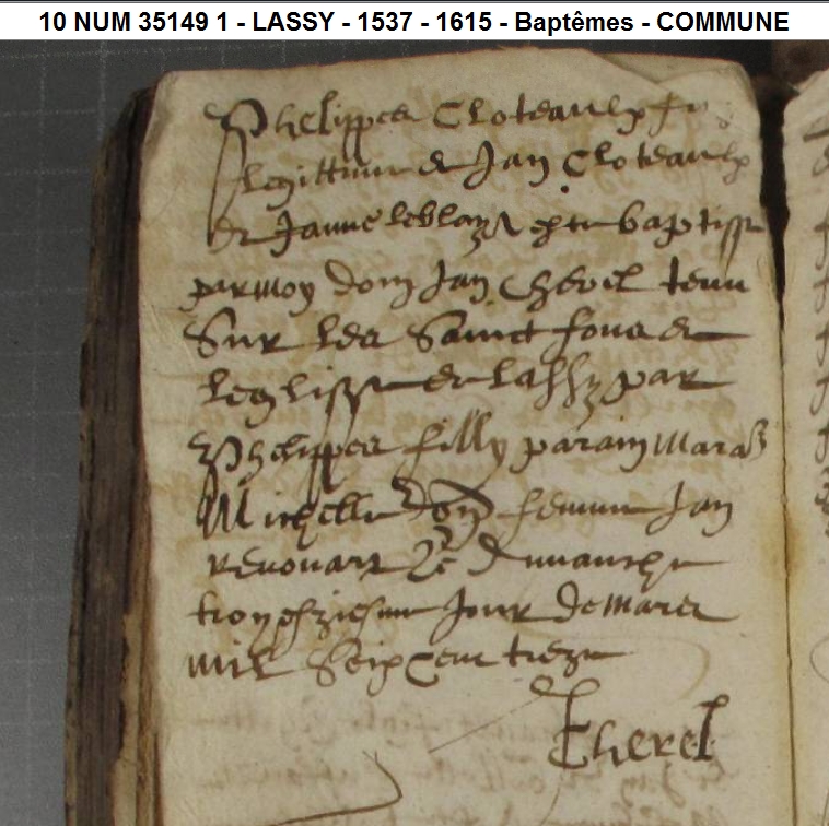 Père : CLOTIAULX Julien ( < 1574 - > 1607 )