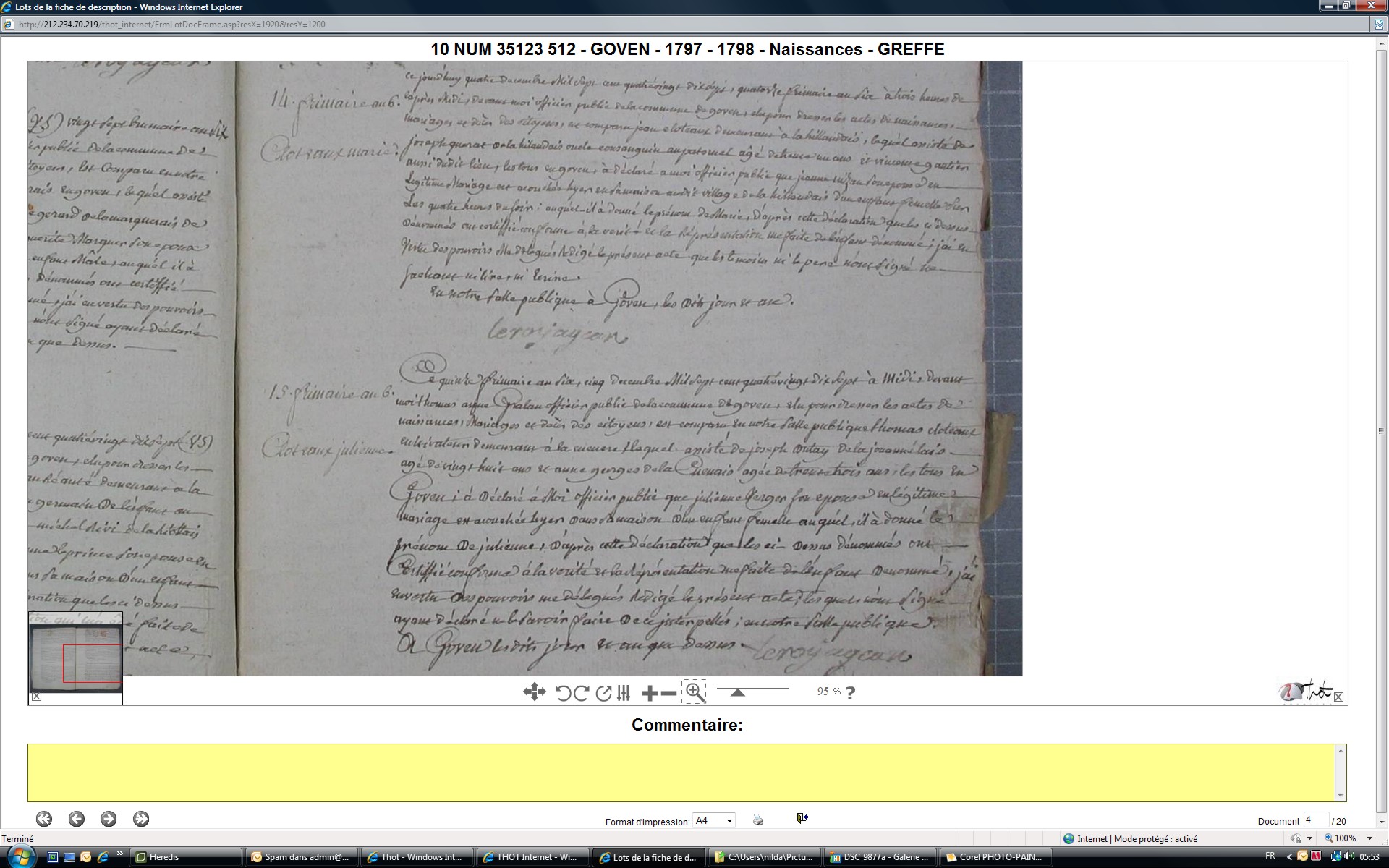 Naissance : 15 frimaire an VI à Goven 35580 Cucuère