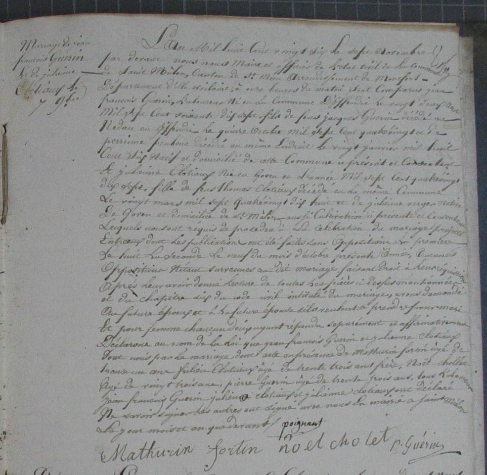 Mariage : 7 novembre 1826 à Saint-Malon-Sur-Mel 35750
