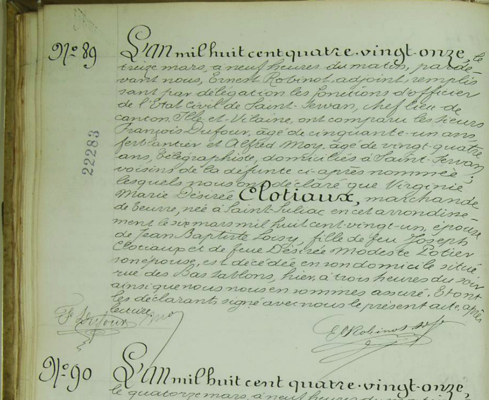 Décès CLOTIAUX Virginie 1891 Saint Servan sur Mer