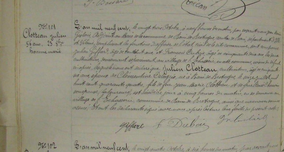 Présents : CLOTTEAU Julien (du Bignon), FILLY Joseph