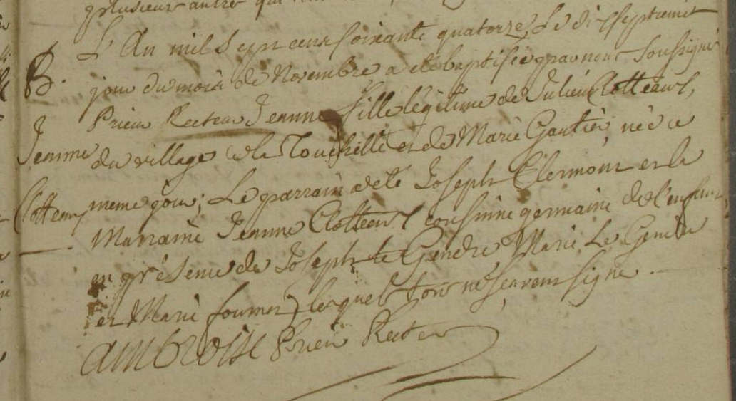 Témoins :CLOTEAUX Perrine ( ~ 1700 - 1778 )