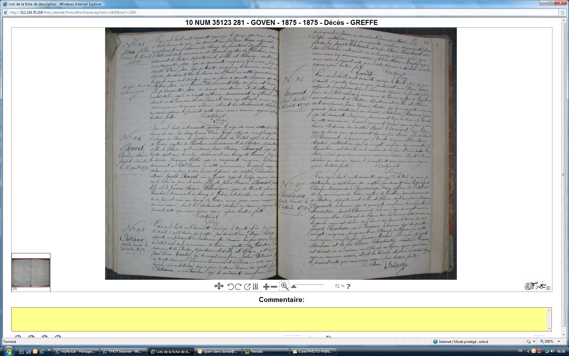 domicile: 20 fevrier 1835 , La Chapelle-Bouëxic, 35, Ille et Vilaine, Bretagne, France