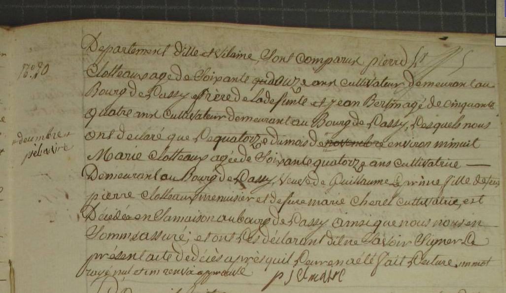 Naissance possible en 1717Domicile : 1746 à Guignen 35580 Pavoinière Décès : après 1782