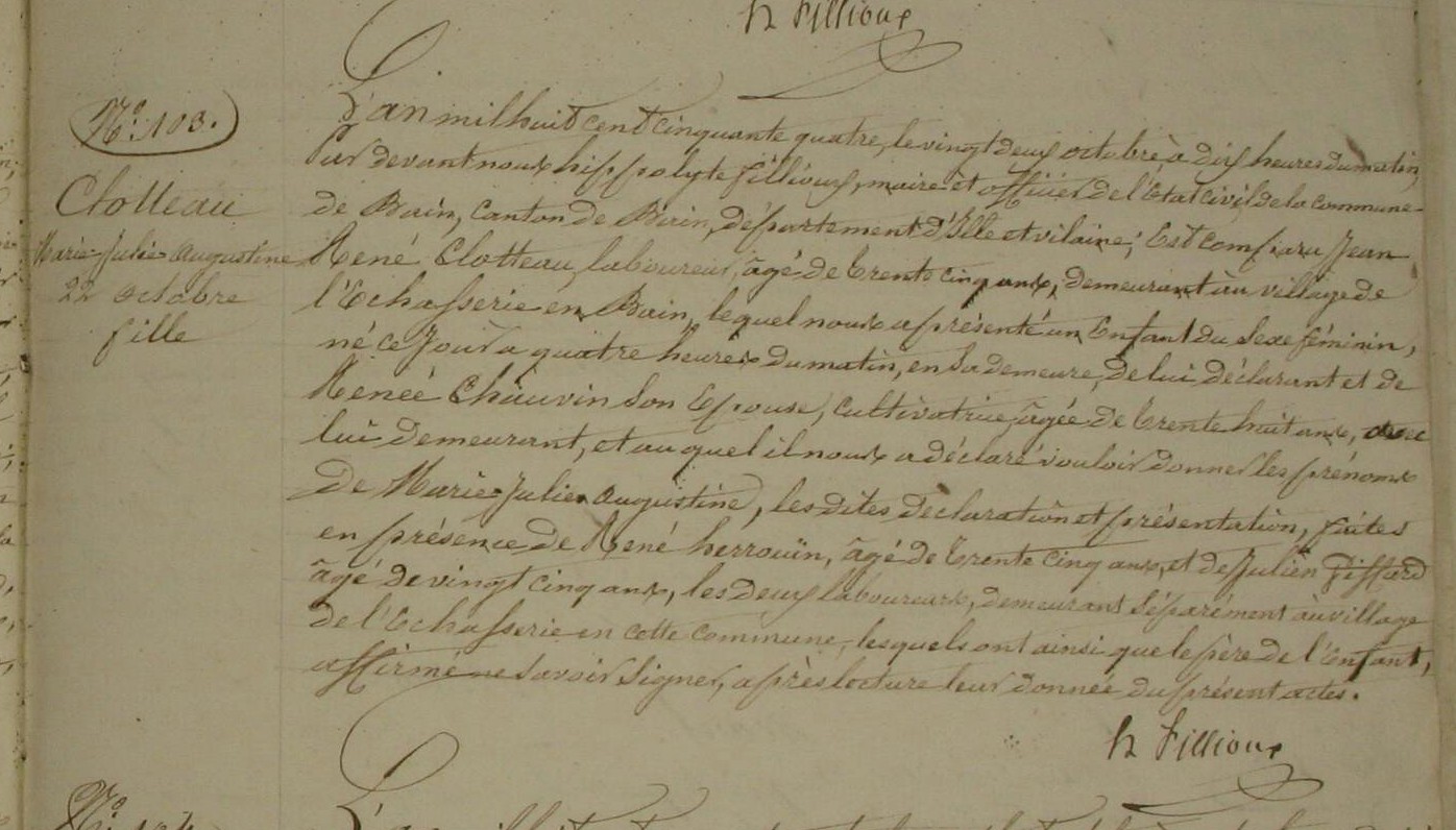 Père : CLOTTEAU Jean René ( 1819 - 1855 )