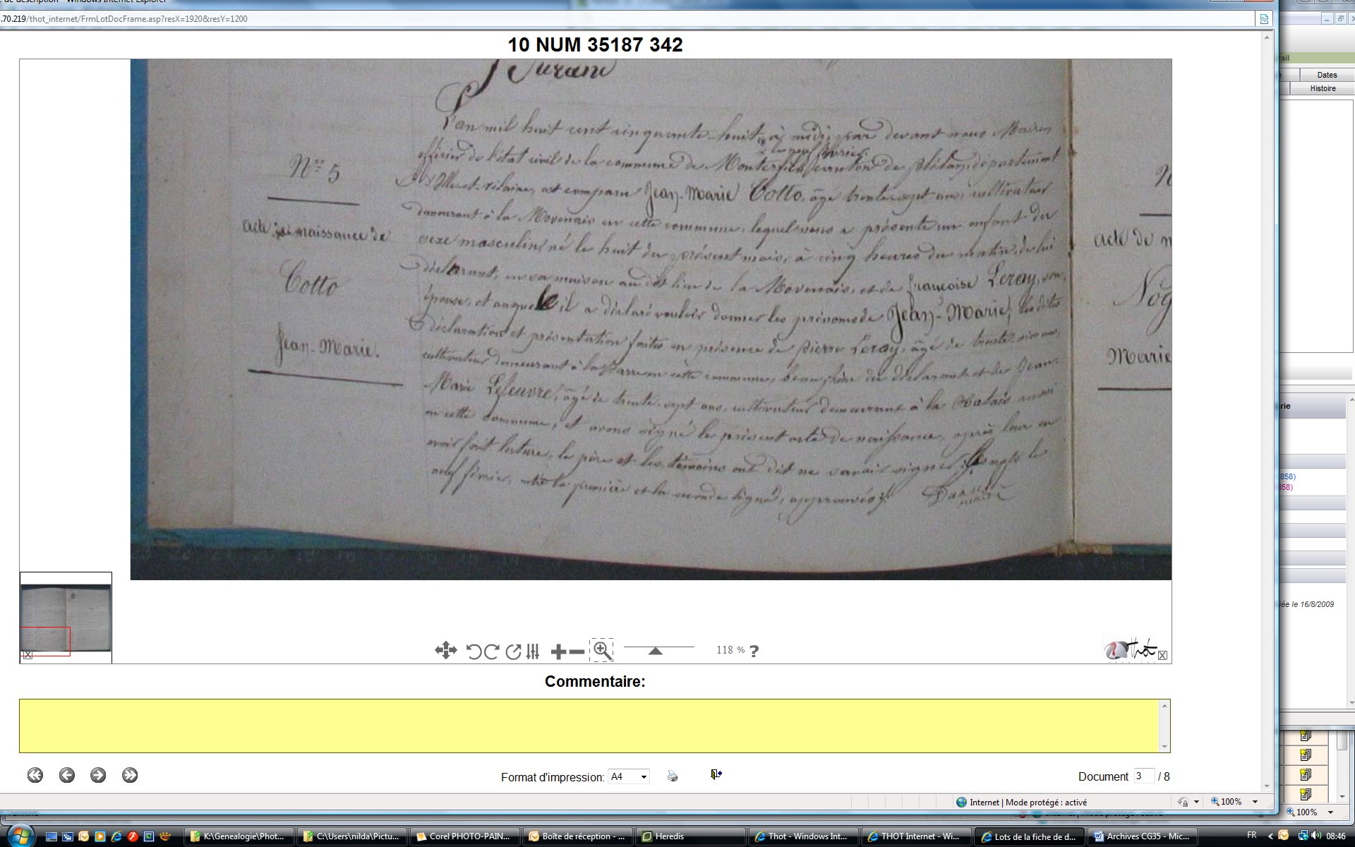 Naissance : à Moigné 35910