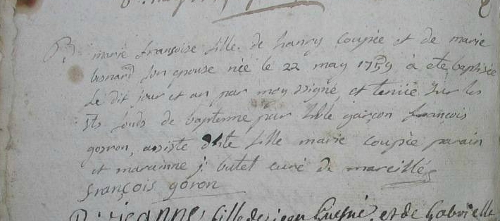 Père : COUPÉ Bertrand ( (c) 1688 - 1760 )