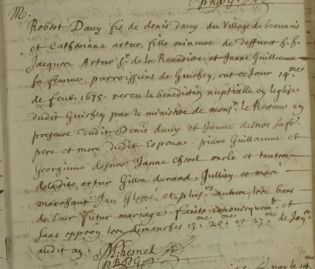Mariage religieux : 14 février 1675 à Guichen 35580