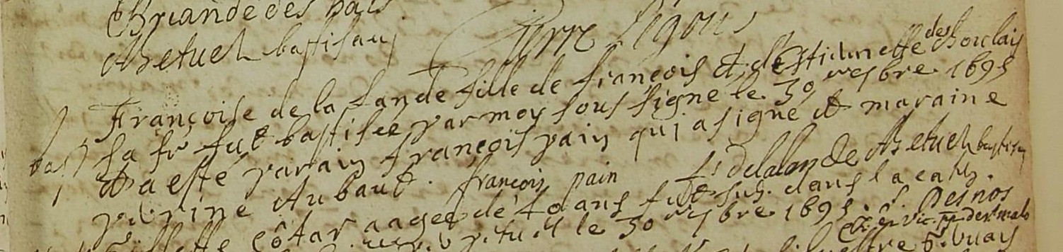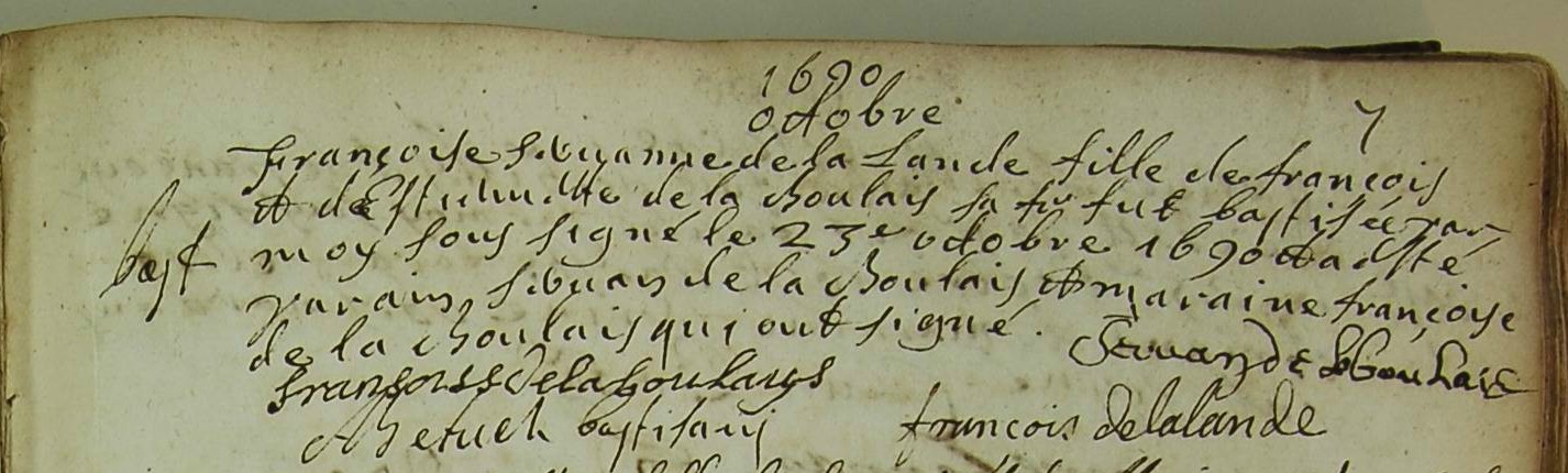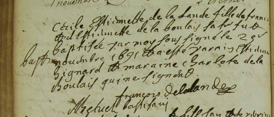 Témoins :LA BOULAYS (de ) Charlotte ( < 1675 - > 1691 )