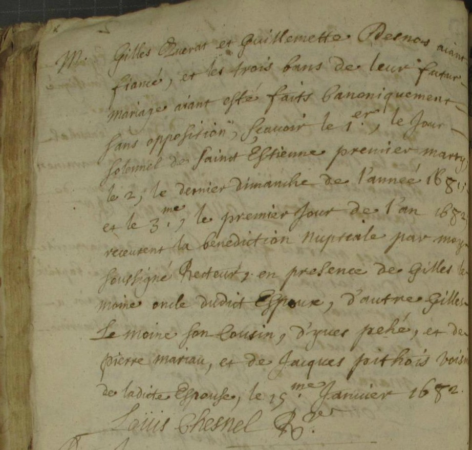 Mariage religieux : 15 janvier 1682 à Guichen 35580