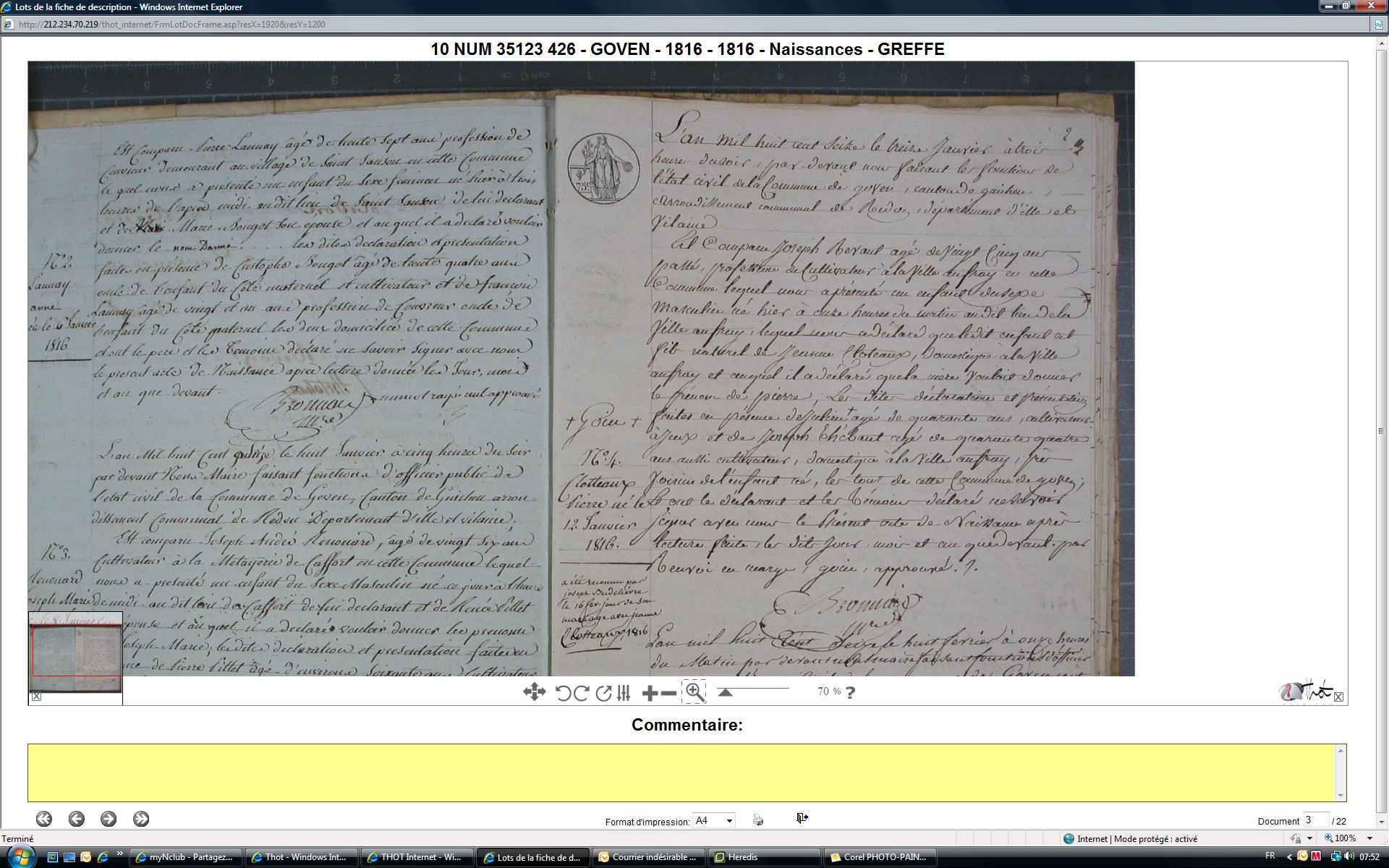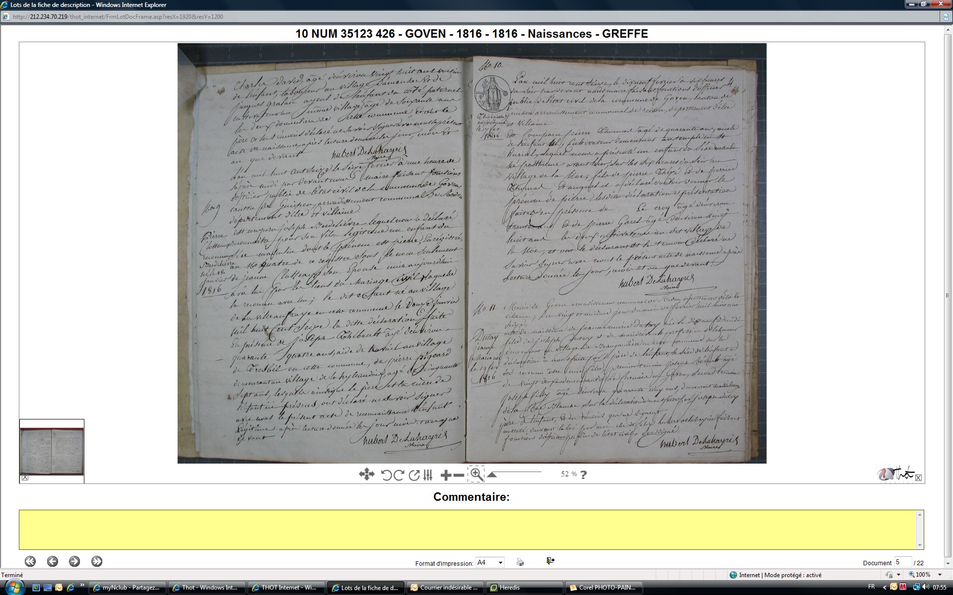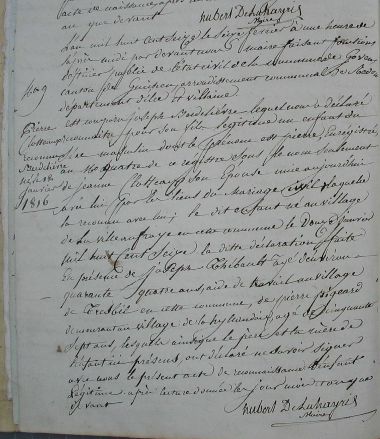 né CLOTEAUX reconnu au mariage de ses parents le 16/2