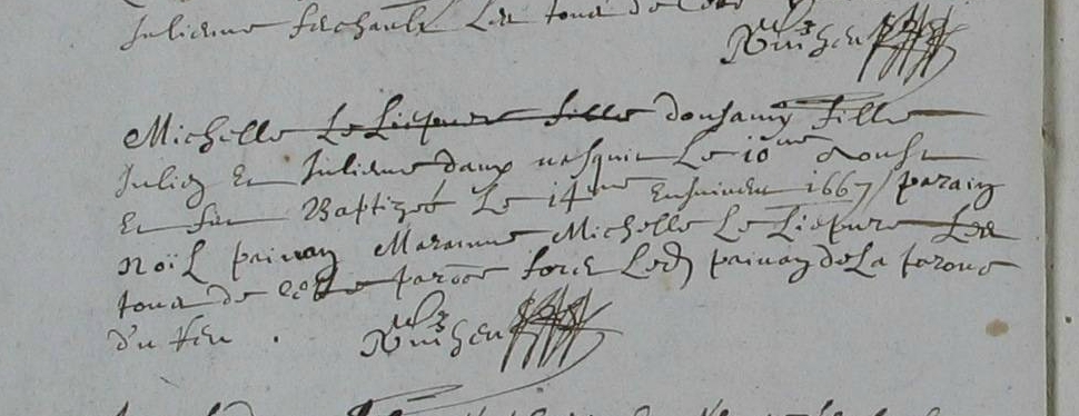 Mère : PLOUAS Jeanne ( < 1668 - > 1688 )