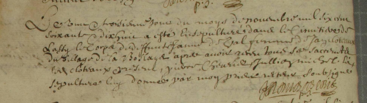 Naissance : avant 1660 Décès : 23 novembre 1678 à Lassy 35580 Village de la Boslaye