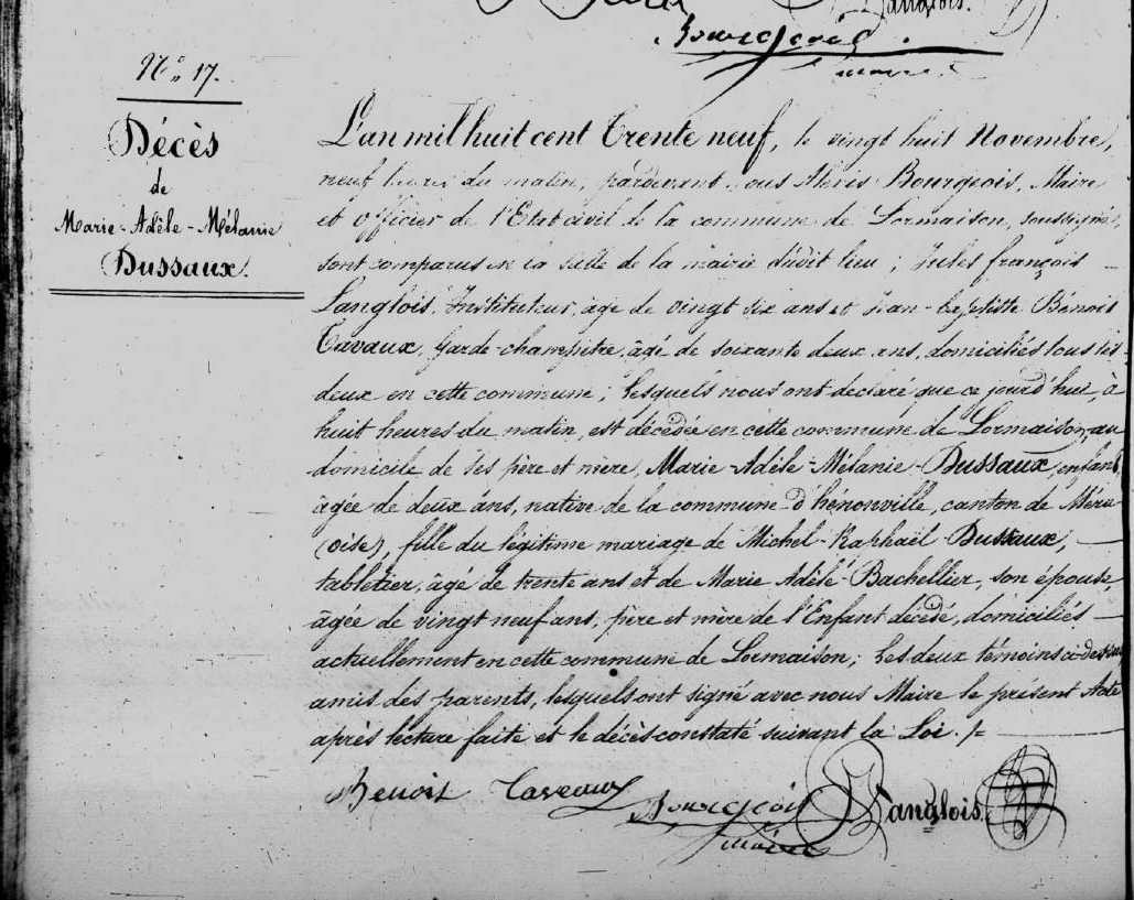 Décès : 28 novembre 1839 à Lormaison 60110