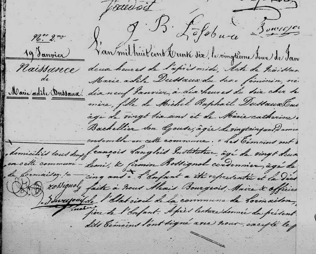 Père : DUSSEAUX Michel Raphael ( 1808 - > 1847 )