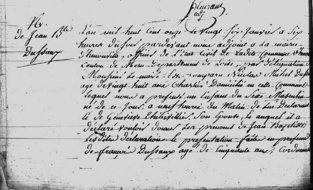 Autre enfant : DUSSAUX François Louis ( 1786 - ? )