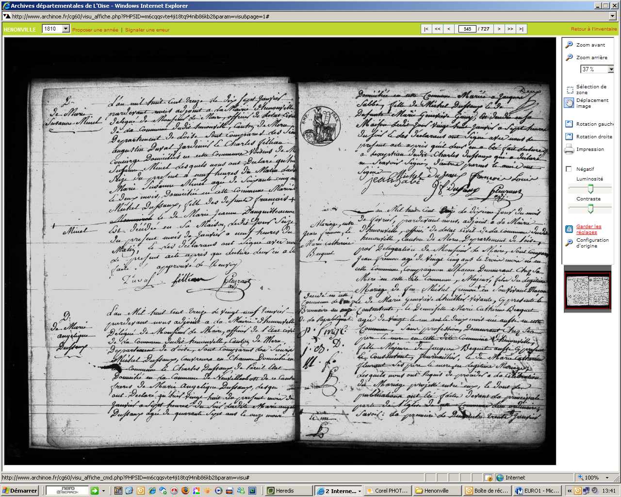 Mariage : 13 janvier 1772 à Hénonville 60119