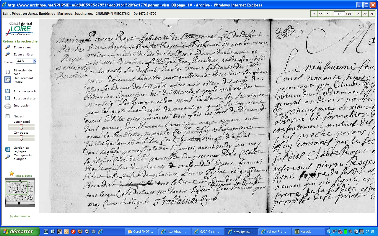 Mariage : 21 juillet 1698 à Saint-Priest-En-Jarez 42270