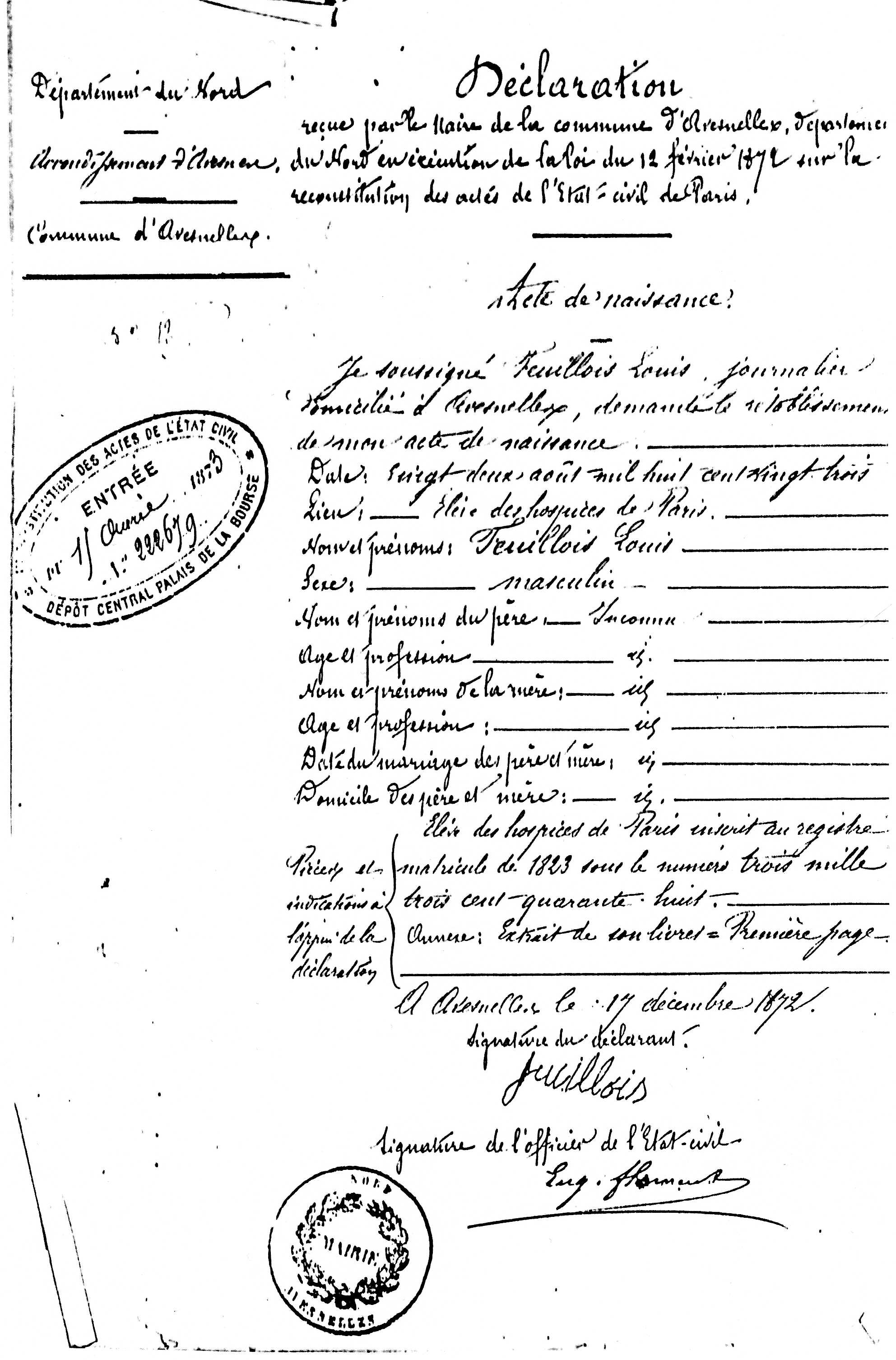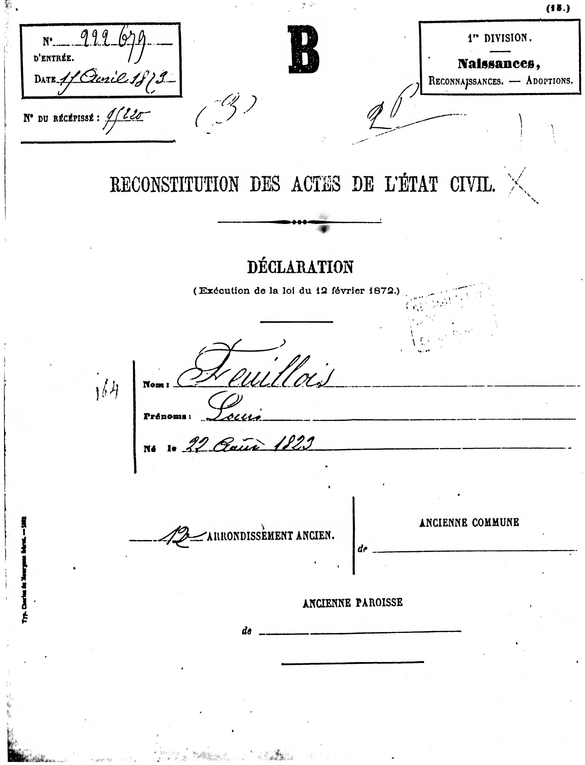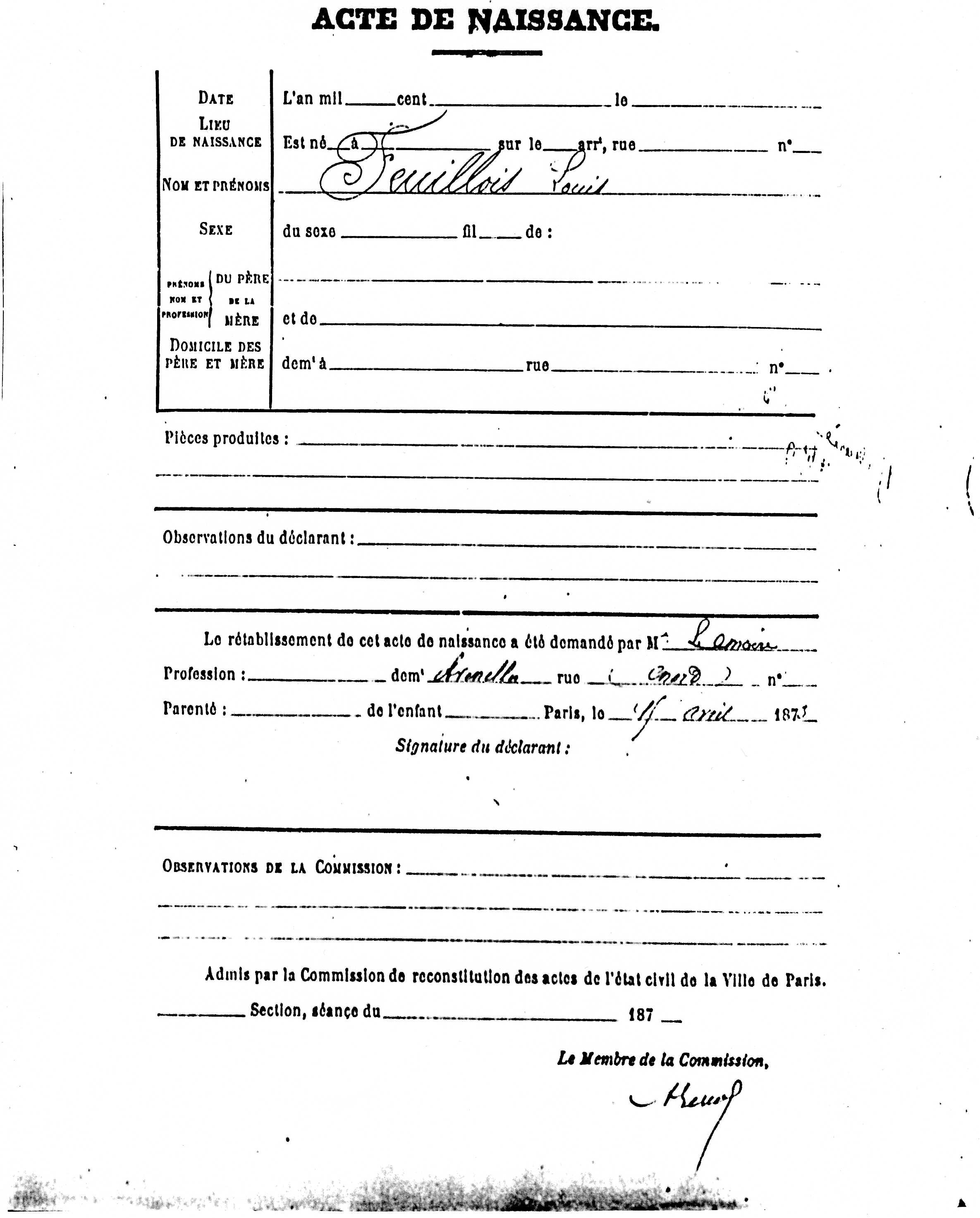 Père : FEUILLOIS Louis ( 1823 - 1898 )