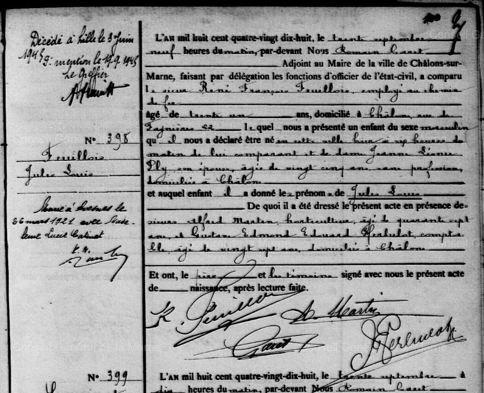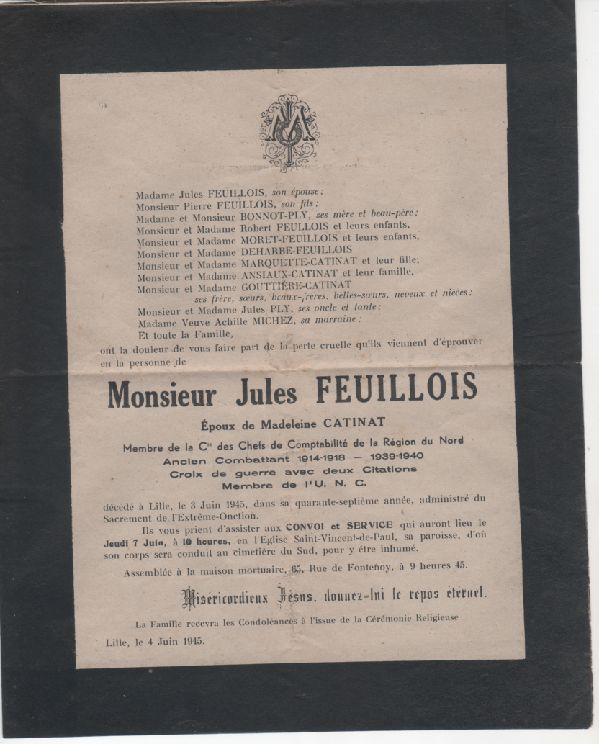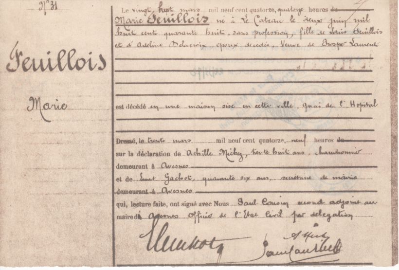 Père : FEUILLOIS René François ( 1867 - 1916 )