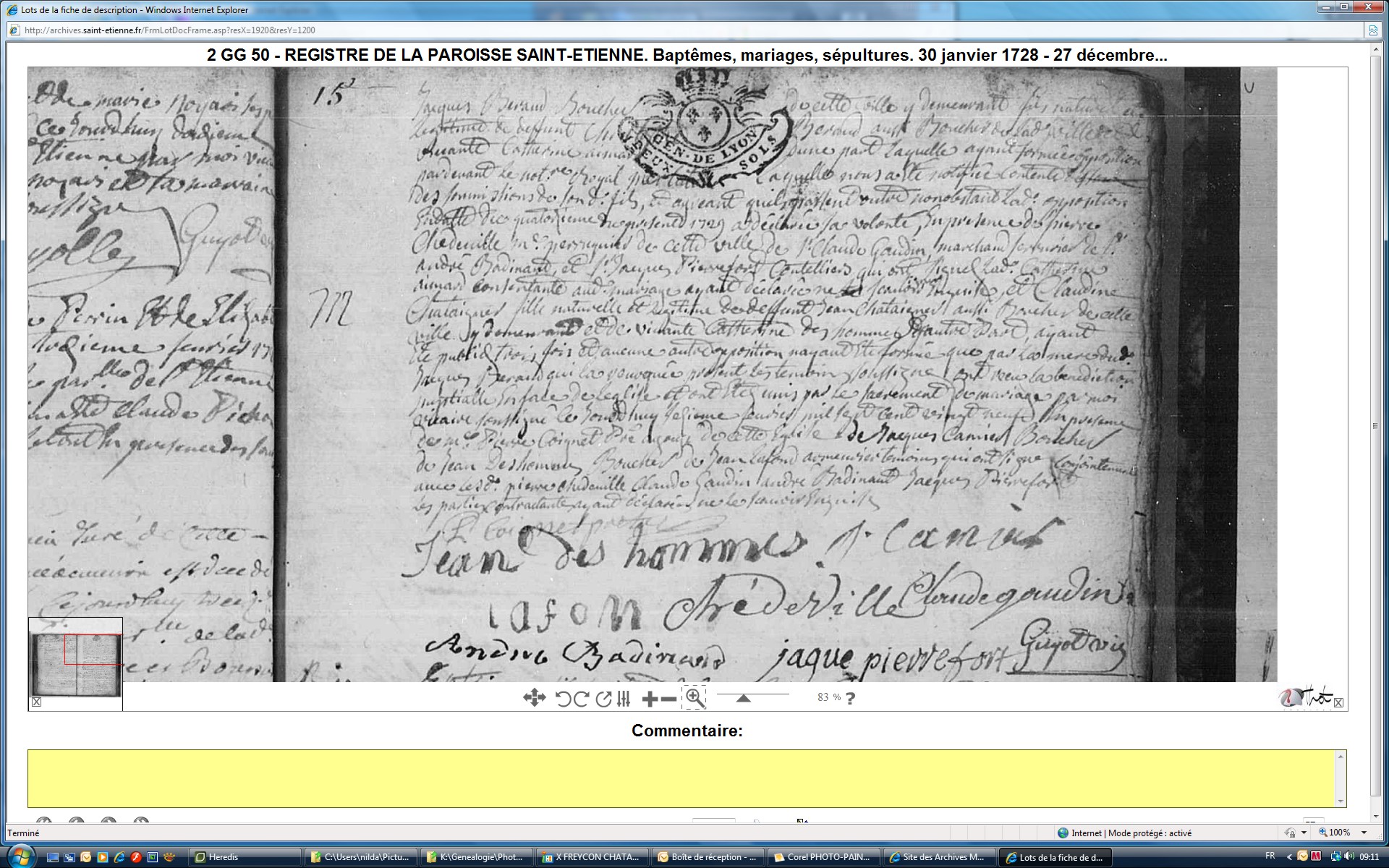 Mariage : 14 février 1729 à Saint-Étienne 42100