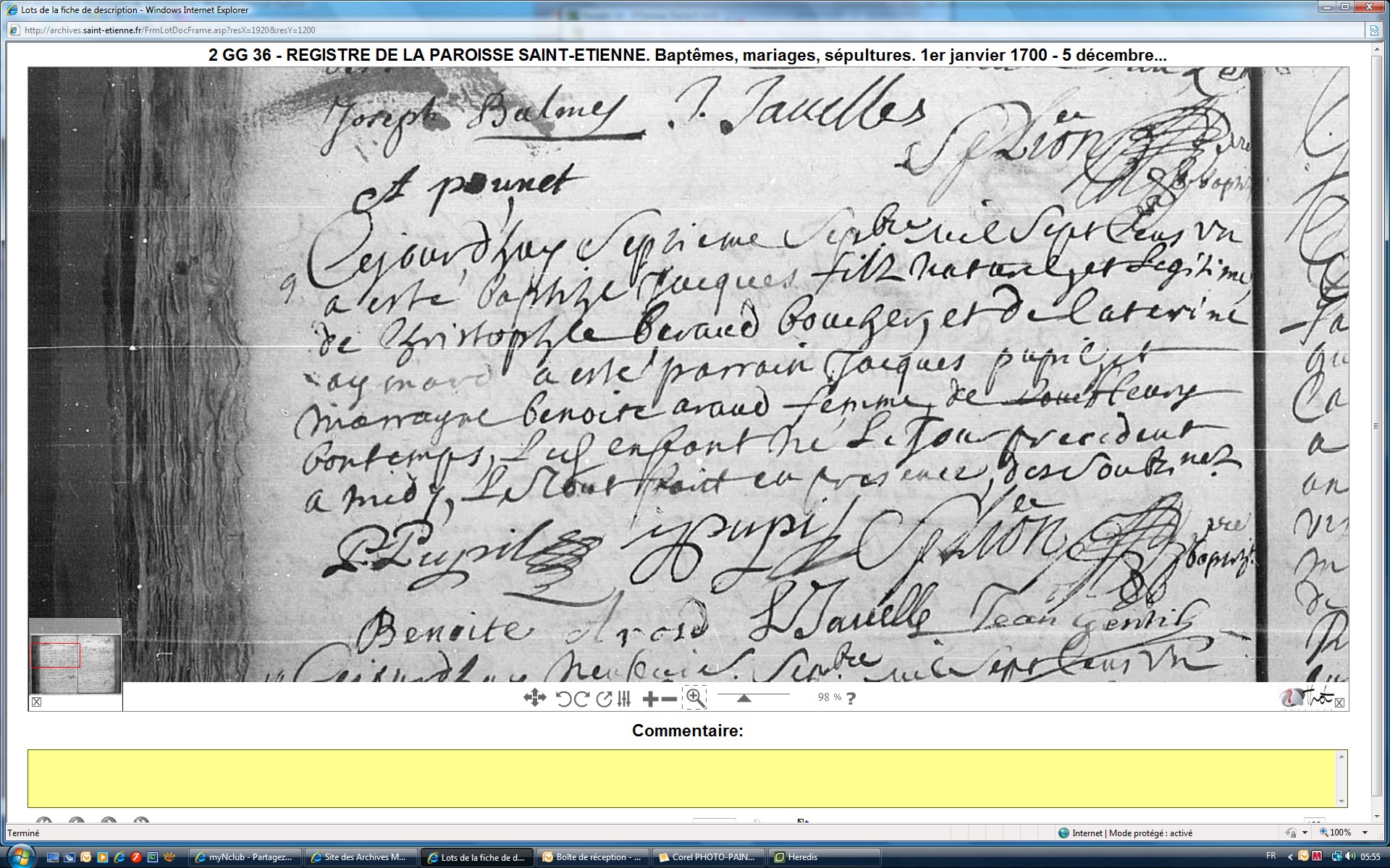 Naissance : 7 octobre 1677 à Saint-Étienne 42100 Paroisse Saint-Etienne