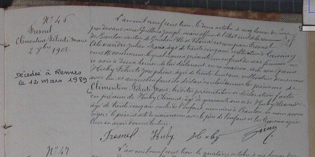 Naissance : 2 octobre 1903 à Baulon 35580