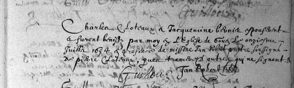 Témoins :CLOTEAUX Pierre ( < 1636 - > 1654 )