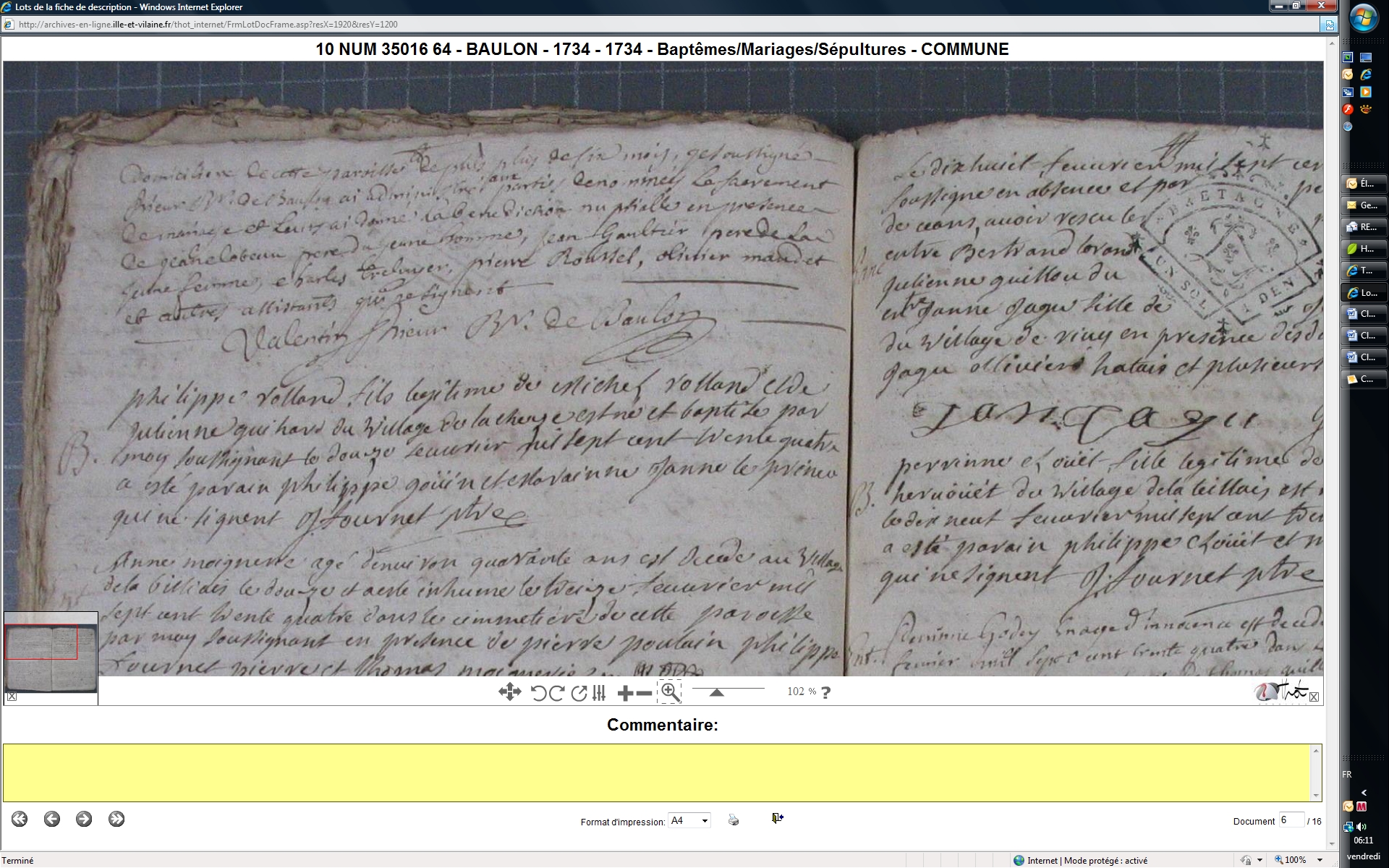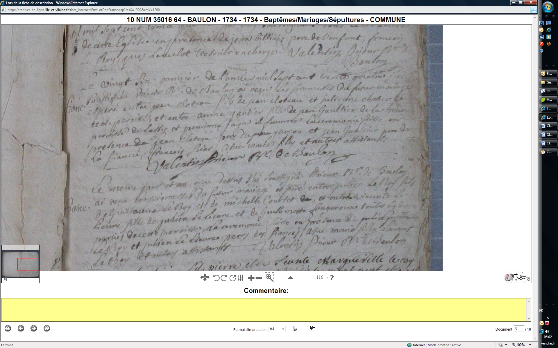 Mariage : 9 février 1734 à Baulon 35580