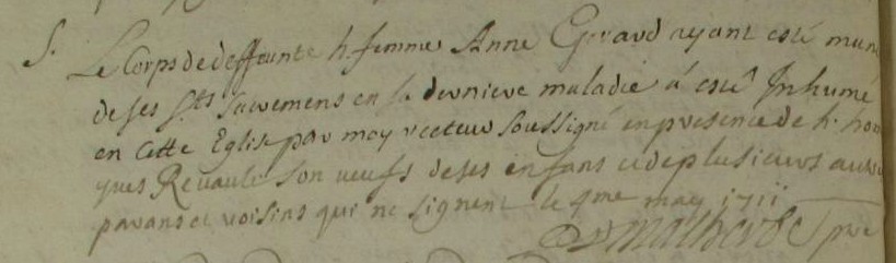 Officiant : LevieilDécès : 8 février 1730 à Guignen 35580 Pavoinière
