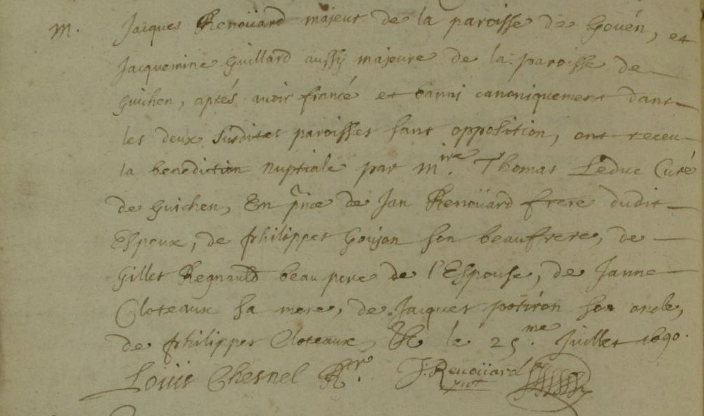 Mariage : 25 juillet 1690 à Guichen 35580
