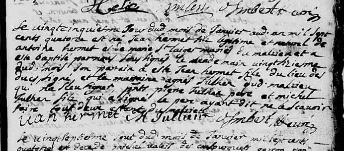 Père : HERMET Jean ( < 1649 - > 1704 )