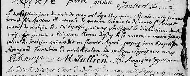 Père : HERMET Antoine ( 1669 - > 1727 )