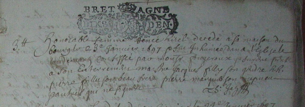 Décès : 23 janvier 1697 à Goven 35580 Bourg