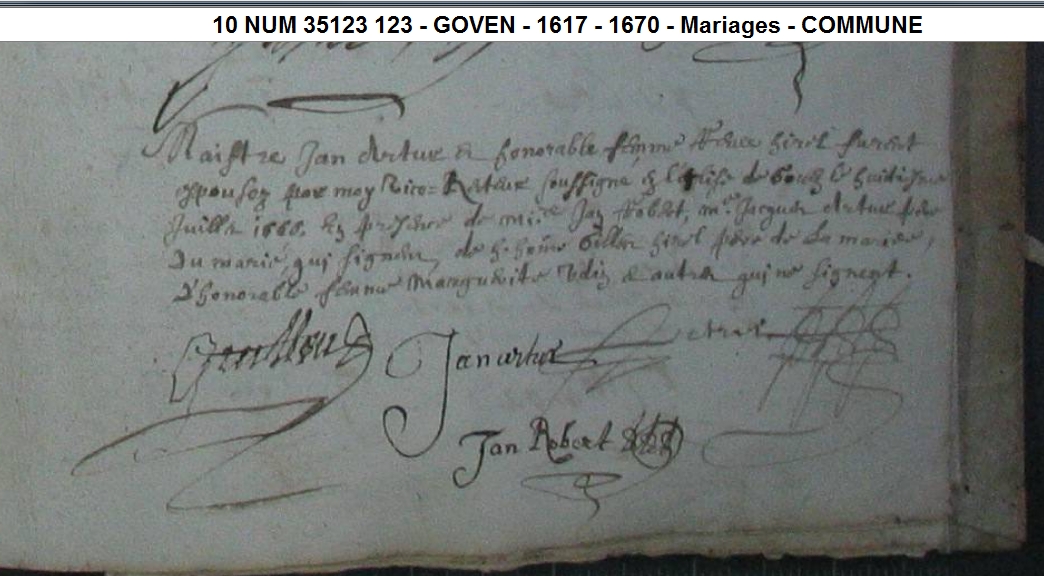Union 2 : ARTUR Jean ( 1648 - 1666 )