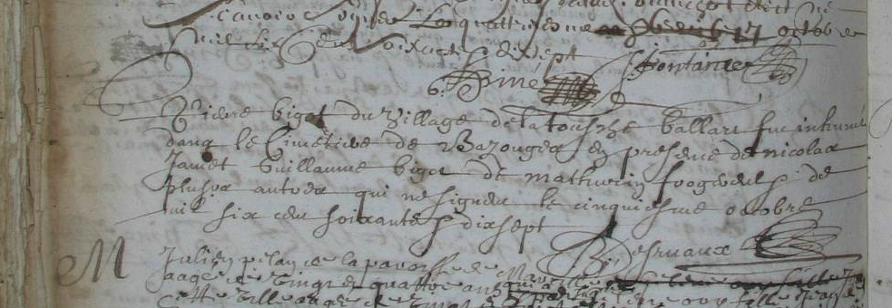 Inhumation : 5 octobre 1677 à Bazouges-La-Pérouse 35560 Village de la Touche Ballart