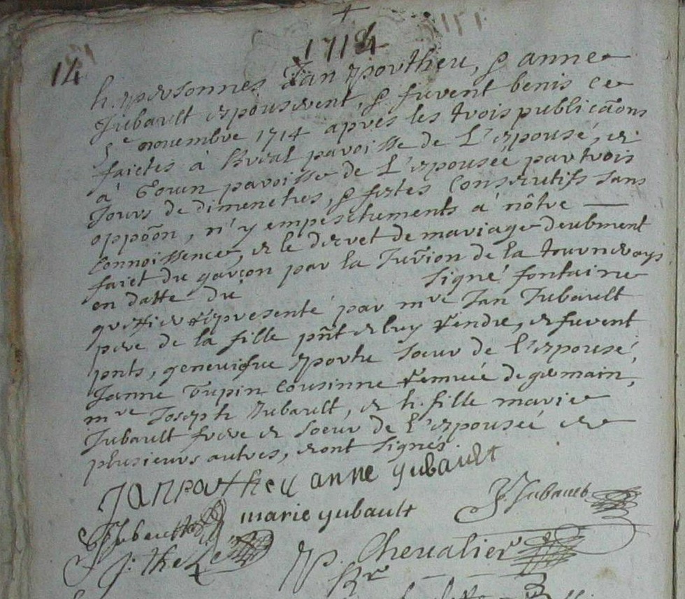 Evenement_Union_JUBAULT_Georges_PILET_Marie_Mariage_98719_1.jpgPierre1688 Jubault, H.H. 1688- marié le 28 janvier 1704 avec Perinne1685? Lebreton, H.F. ca 1685