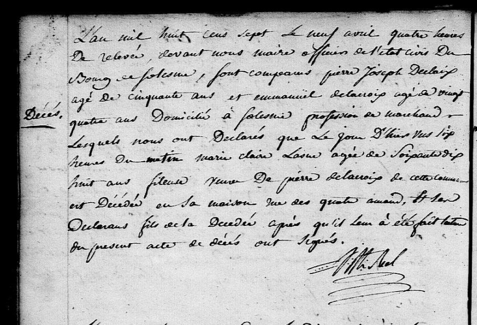 Naissance : 12 janvier 1735 à Solesmes 59730 Décès : 9 avril 1807 à Solesmes 59730