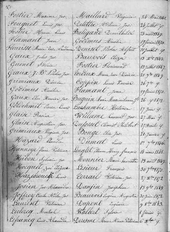 Naissance : calculée 1861 Domicile : 1895 à Bellignies 59570 Décès : après 1895