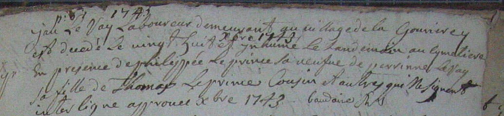 ou LE RAYDécès : 28 décembre 1743 à Goven 35580 Gourierey