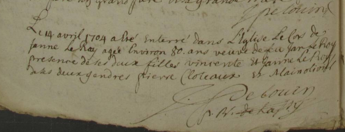 Naissance : calculée 1624 à Lassy 35580 Décès : 14 avril 1704 à Lassy 35580