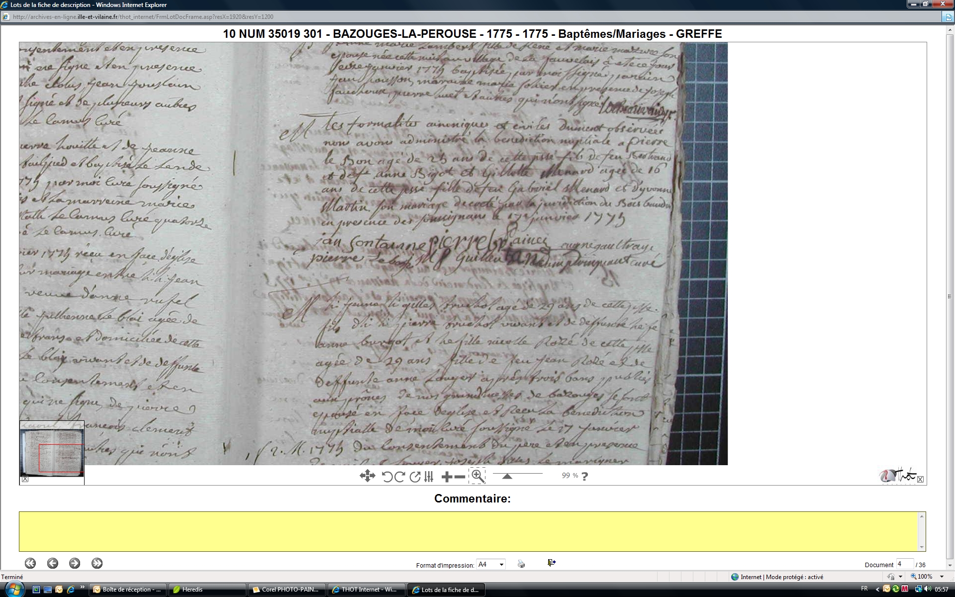 Mariage : 17 janvier 1775 à Bazouges-La-Pérouse 35560