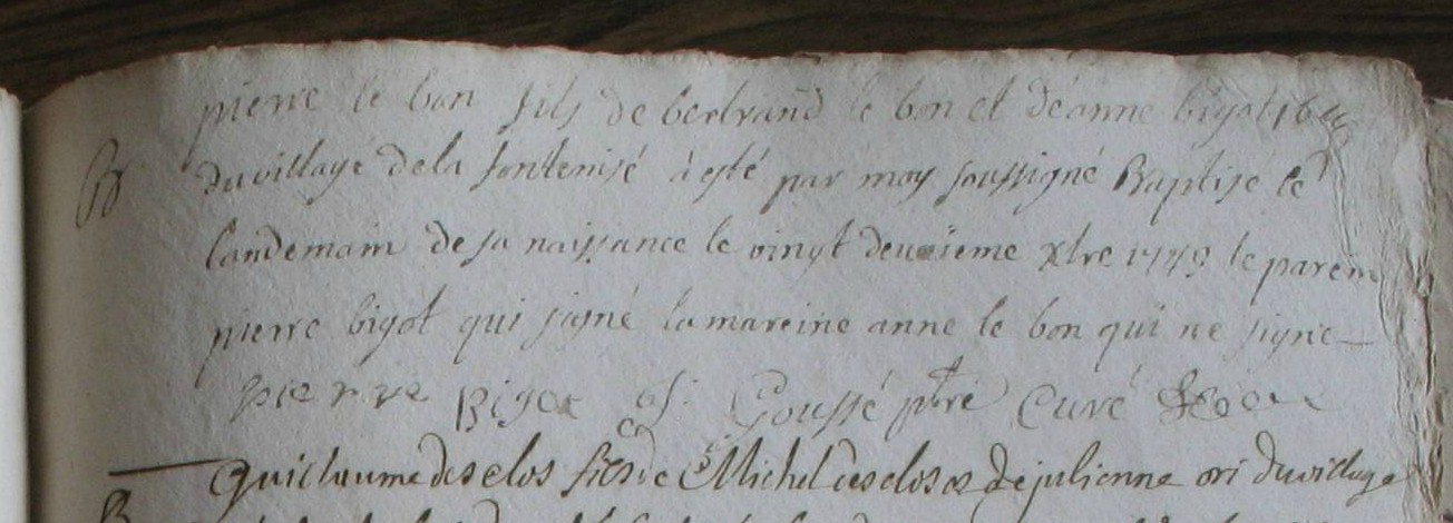Baptême : 8 juillet 1716 à Bazouges-La-Pérouse 35560 La peinnerye