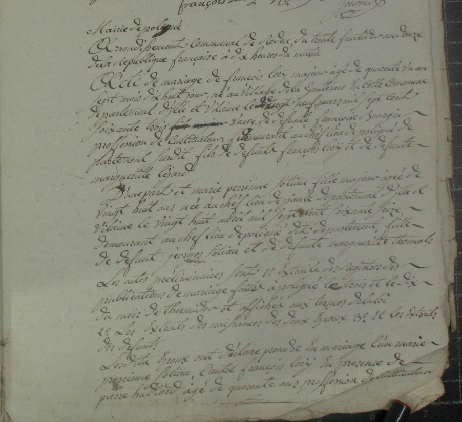 Mariage : 9 fructidor an XII à Poligné 35320