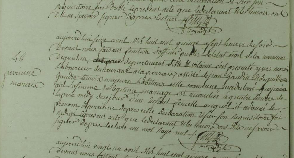 Naissance : 2 mai 1744 à Guichen 35580 la perays